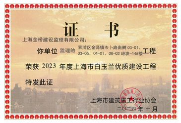 青浦区金泽镇岑卜路南侧03-01/03-05/04-01/06-03地块-14#楼-2023年度雷火(中国)市白玉兰优质建设工程
