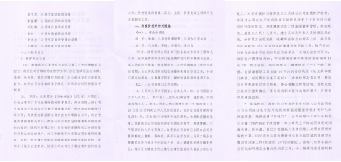 防疫期间,严格杜绝员工聚集,合理安排员工工作间距,禁止使用中央空调,办公区域通风换气,下班后办公室人员对办公区进行清理并消毒。