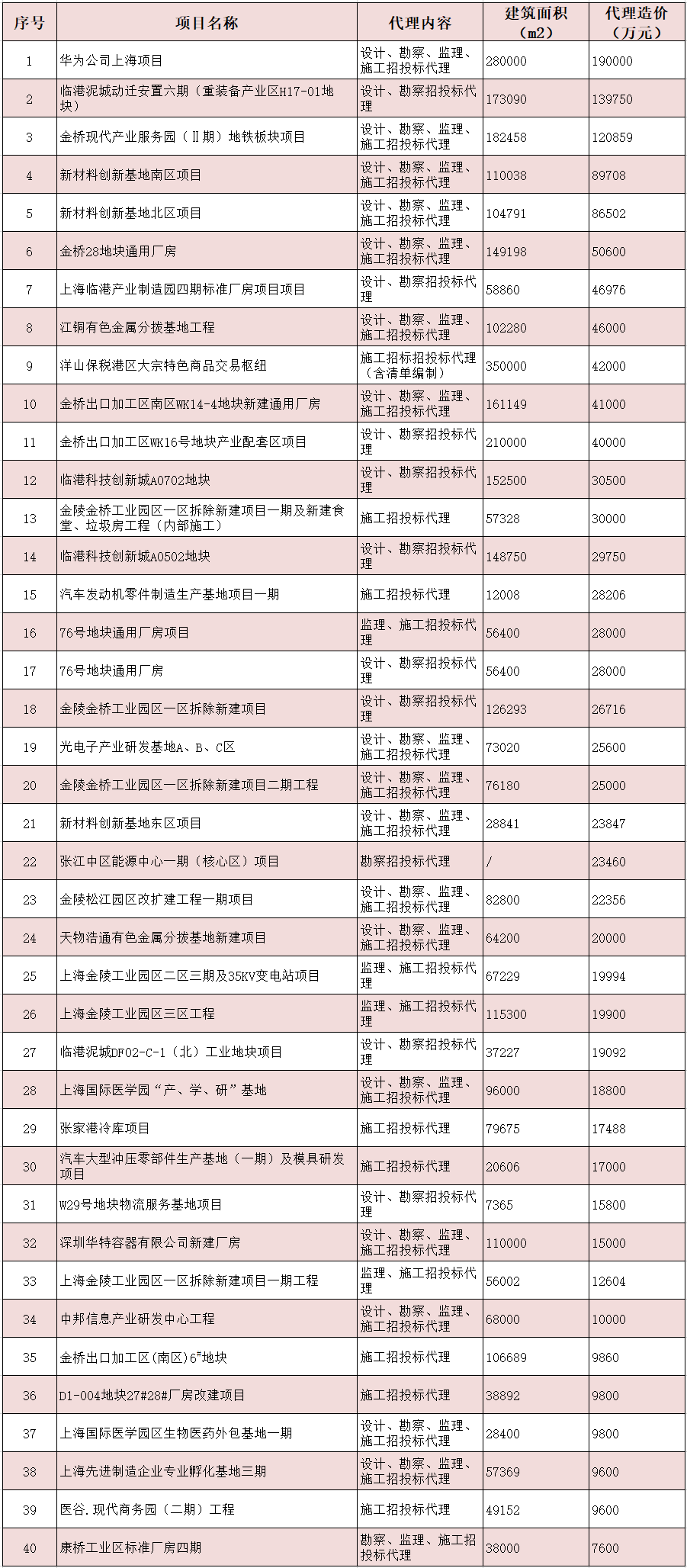 部分厂房工程招标代理业绩一览表