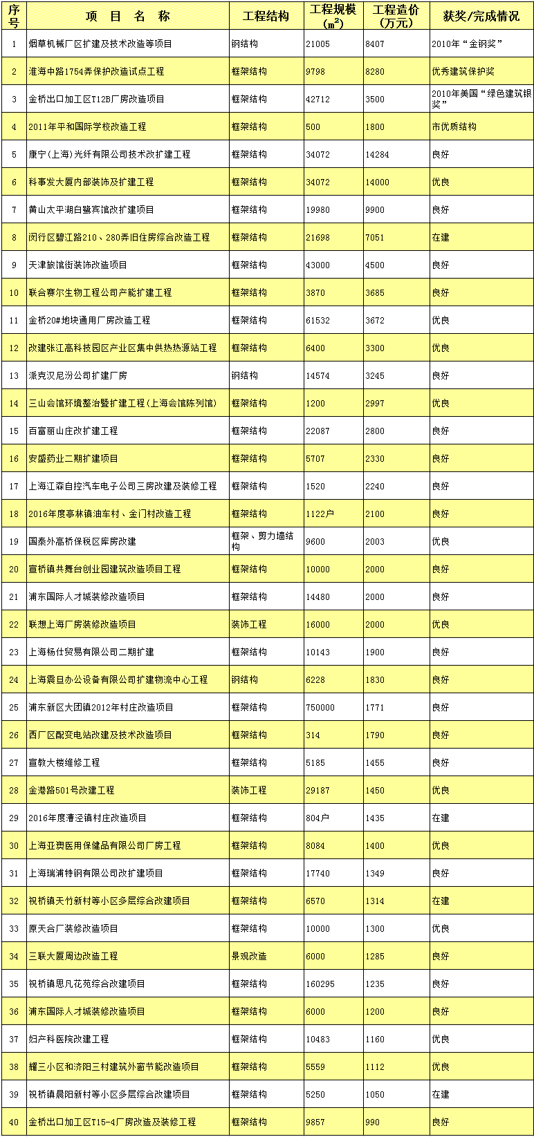 部分改造工程监理项目业绩一览表