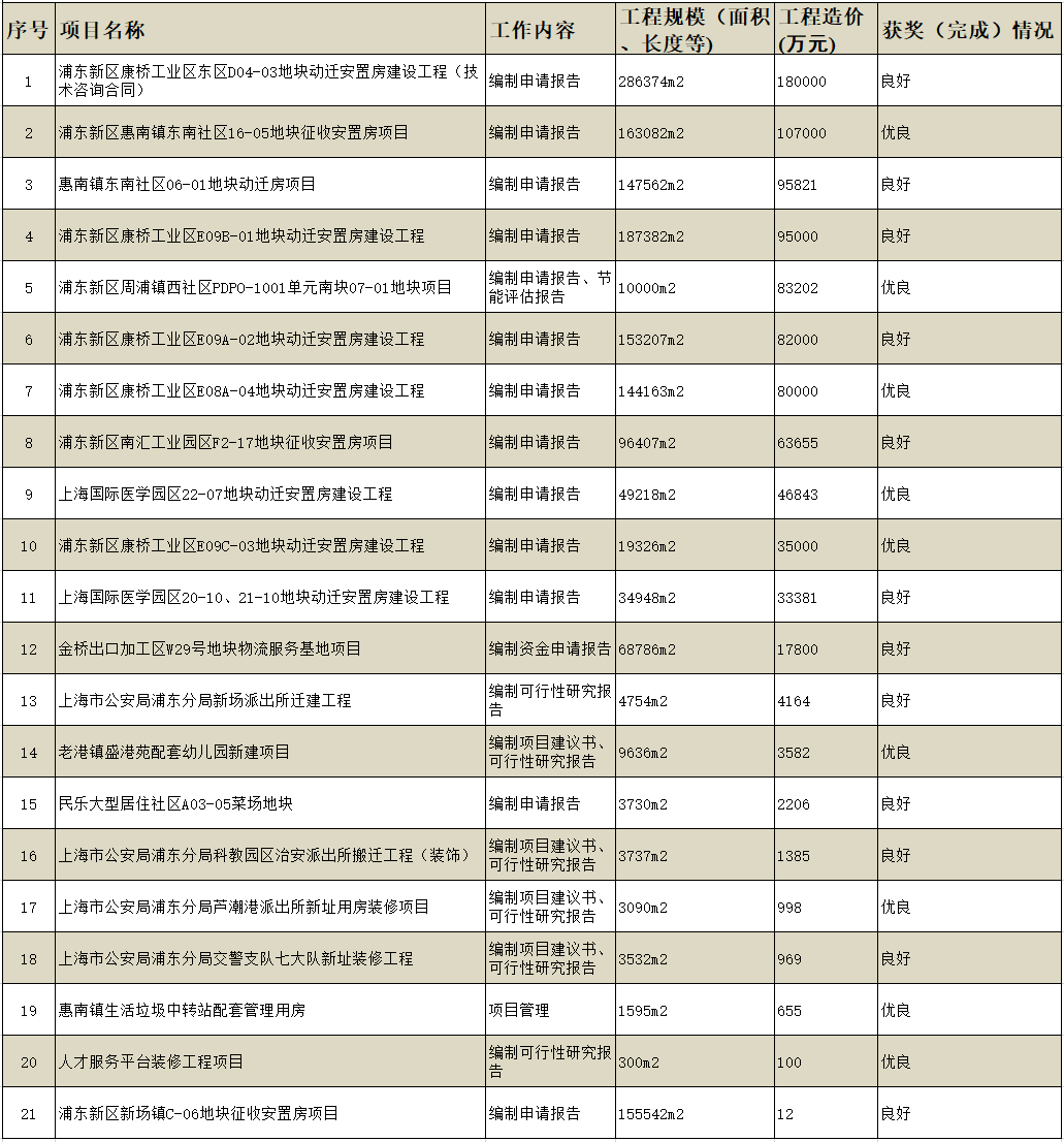 部分工程咨询项目业绩一览表