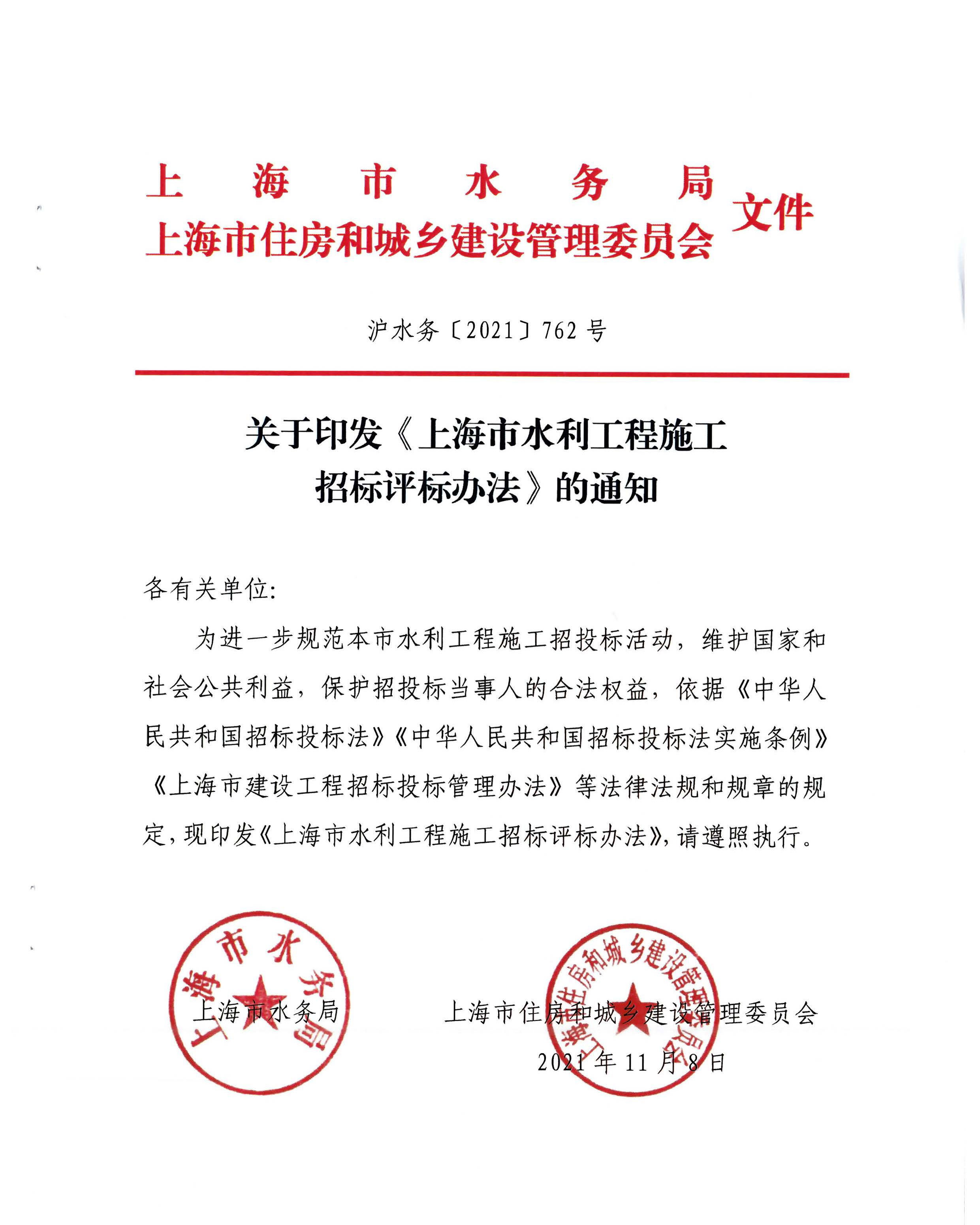 关于印发《雷火(中国)市水利工程施工招标评标办法》的通知【沪水务[2021]762号】.pdf
