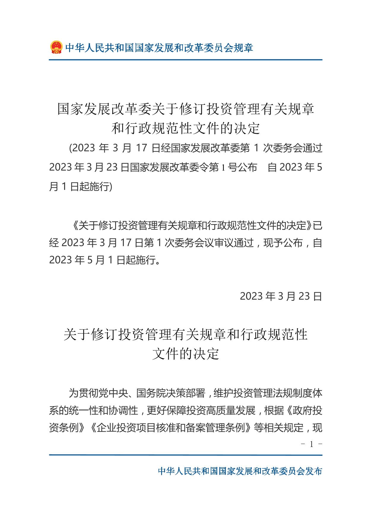 关于修订投资管理有关规章和行政规范性文件的决定.pdf